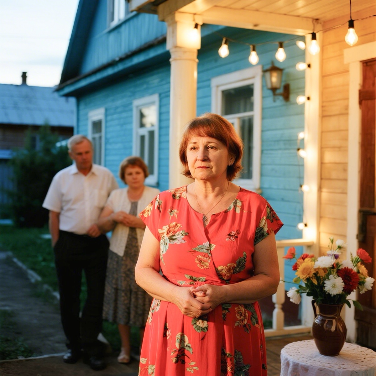 Но когда она подъехала к своему участку, услышала громкие голоса и смех. На веранде горел свет, играла музыка. Нина Петровна медленно поднялась на крыльцо и заглянула в дом.