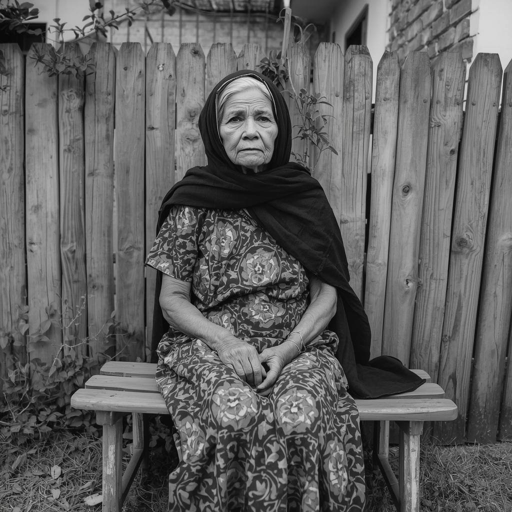 Баба Нюра сидела на скамье перед сломанным забором в одиночестве, усталая и опустошенная.