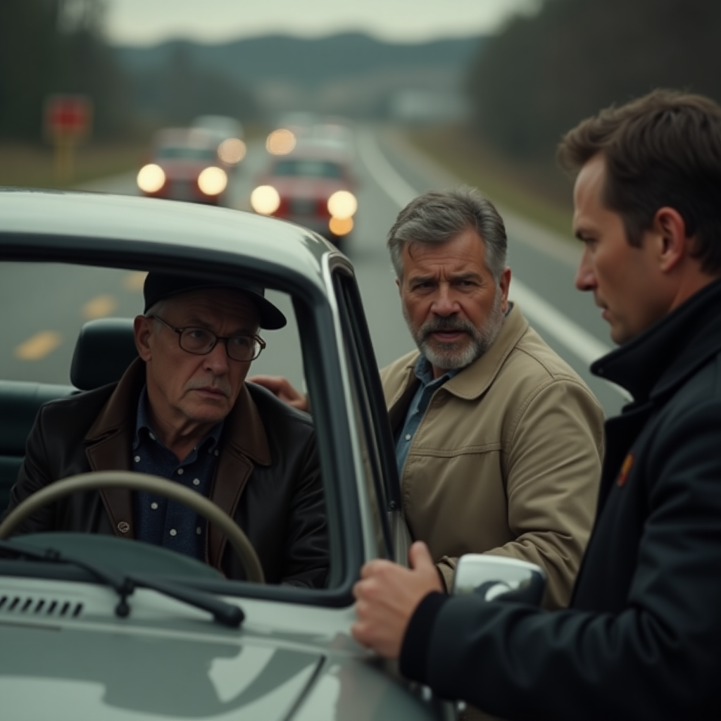 — Спокойно, говоришь? — бандит резко открыл дверцу и вытащил дедушку из машины. — А за крыло кто платить будет?
