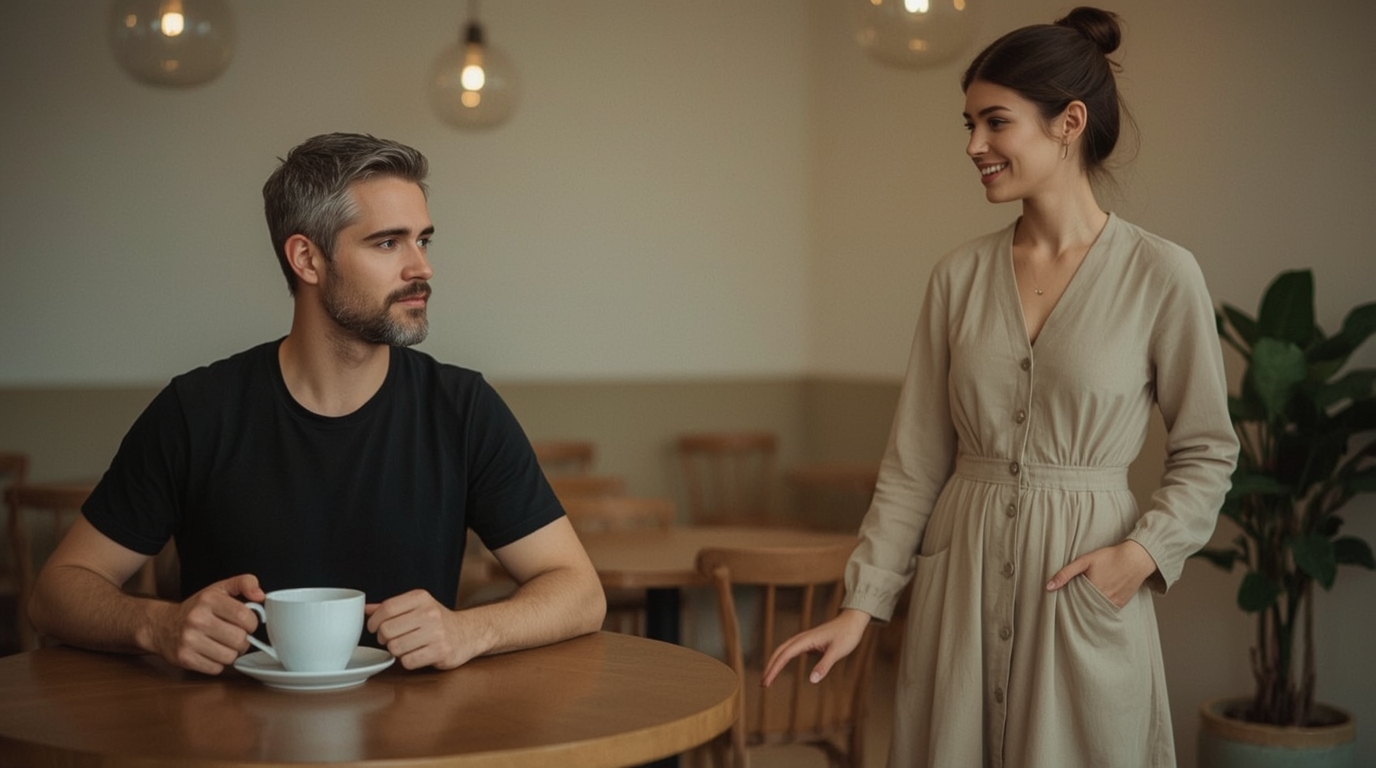 Тот самый, из прошлого. . Лицо — то самое. Только постаревшее, надломленное, не такое уверенное, как прежде. Он сел за столик, глядя на неё, будто увидел призрак.
