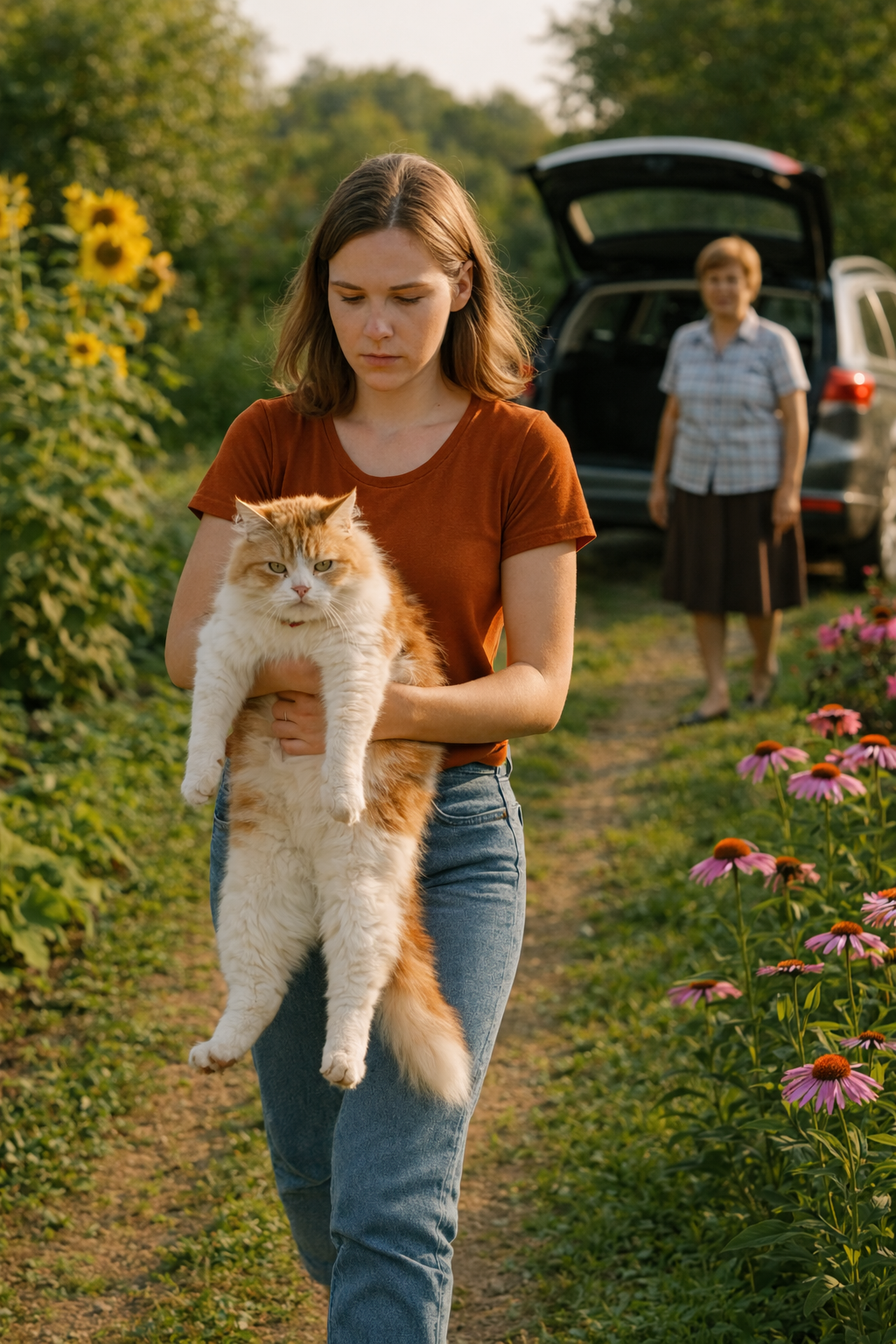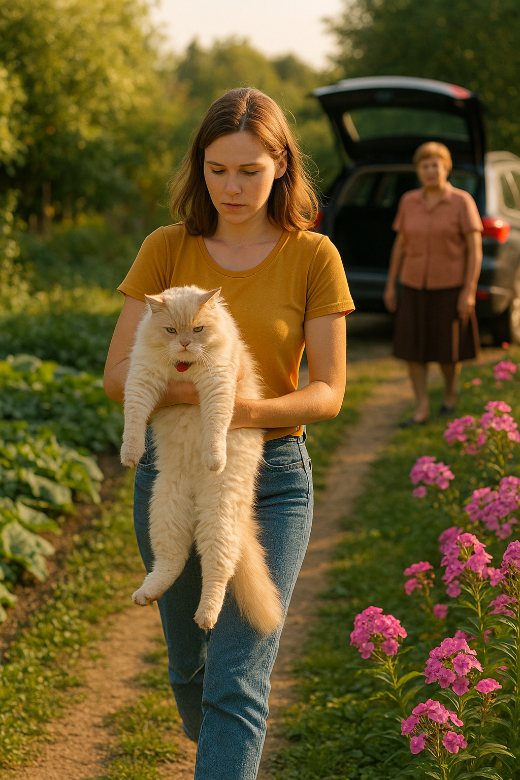 Ира шла по садовой дорожке, неся в руках кошку с болтающимися внизу толстенькими, холеными ножками. Красный, с подвешенным сердечком ошейник прятался в густой шерстке. Евгеша жалобно мяукала, но хозяйка только качала головой.