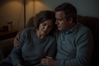 Она, задумчиво, положила телефон возле себя на диван. Тут рядом появился муж, обнял: —