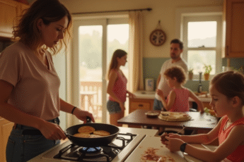 Александра стояла у плиты, помешивая сковороду с золотистой картошкой. Когда-то она готовила ужин для