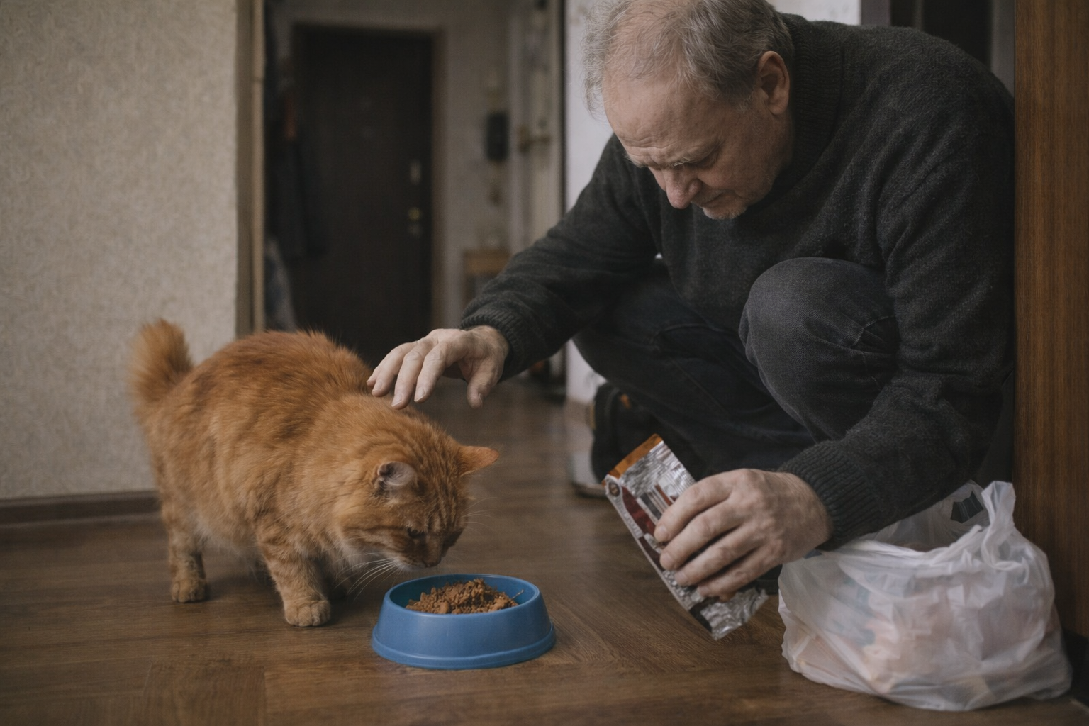 – На, поешь, – Григорий поставил миску на пол и украдкой попытался погладить кота. Тот ловко прогнулся, проскользнул под рукой, едва коснувшись ладони кончиками длинных волосков, и принюхался к еде.