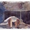 На улице зима, легкий морозец, усиливающийся многократно от порывистого ветра, а женщина бежит без головного убора, нараспашку, и ветер треплет ее светлые волосы, иногда бросая их на встревоженное лицо.