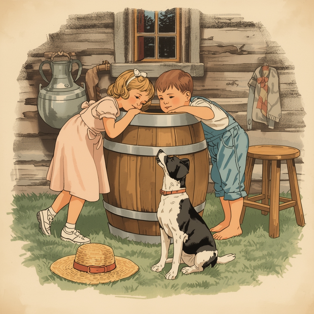 Утром Алёшка решительным шагом подходит к девочке в красном бархатном платьице, с большим бантом на длинных светлых волосах, берёт её за руку и проникновенно говорит: