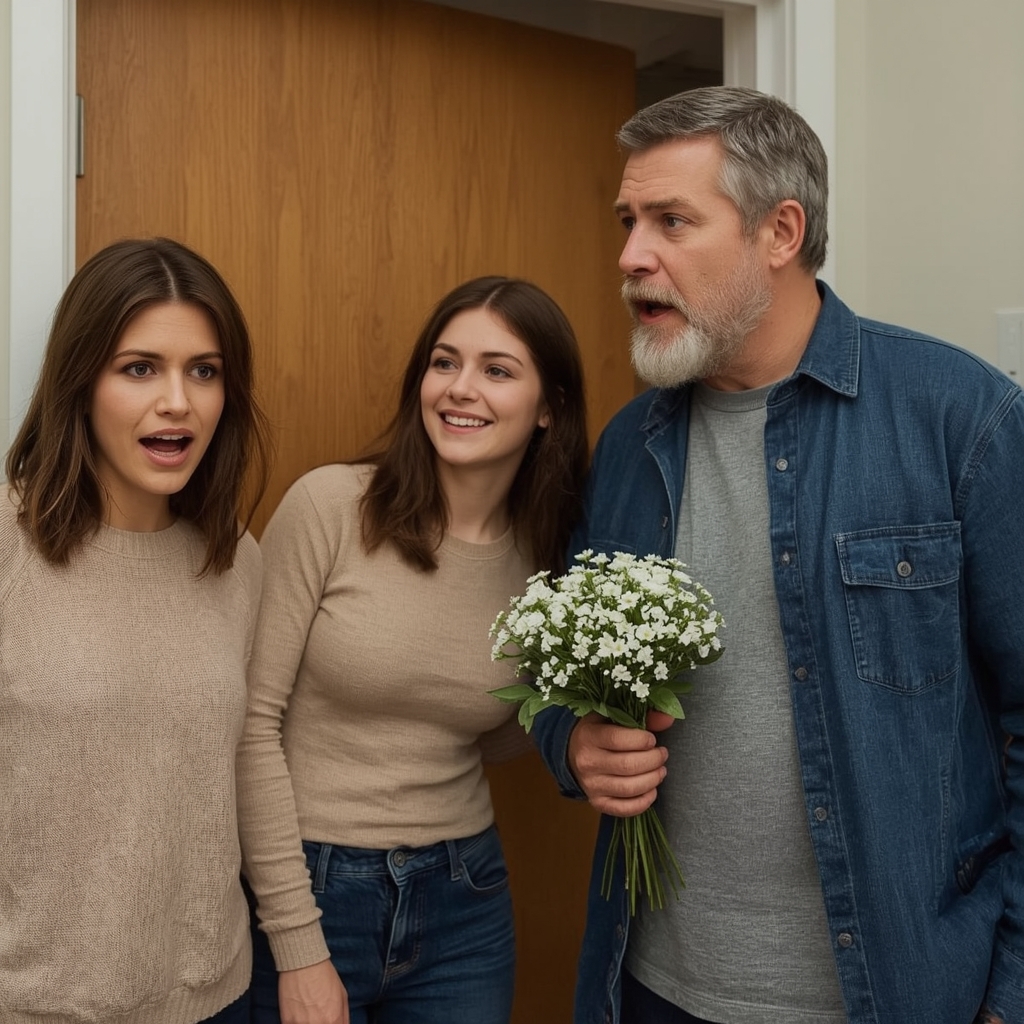 — Ну заходите же! Мама, возьми цветы, а то Дима так и будет стоять с букетом.