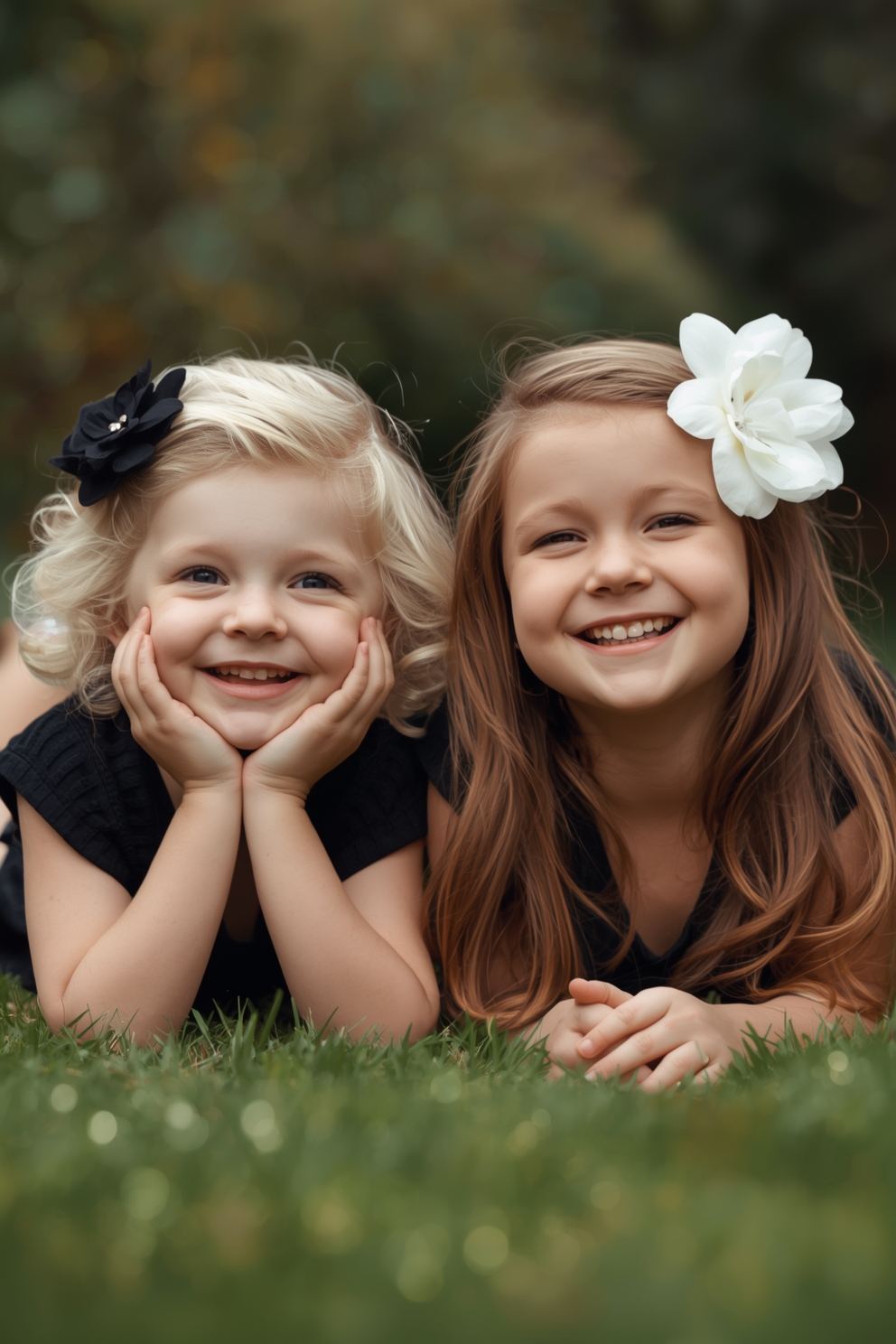 Девочки Вика и Анечка весело играли на лужайке и не хотели расставаться