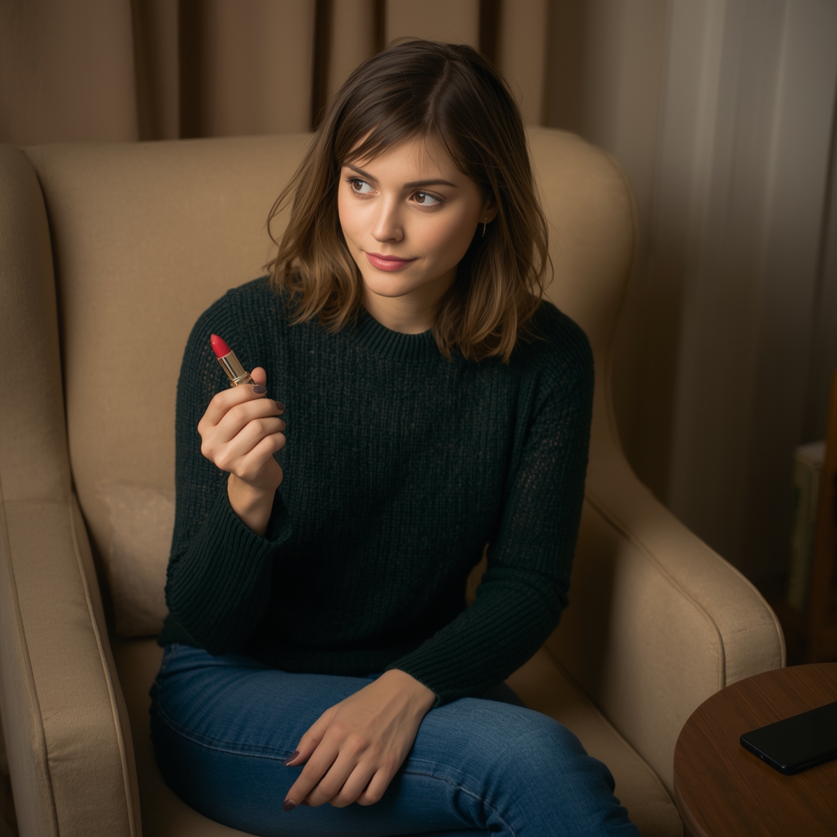 Аня сидела в кресле и рассматривала губную помаду. Это не ее…Она вообще не красит губы. И уж тем более в такой яркий красный цвет.