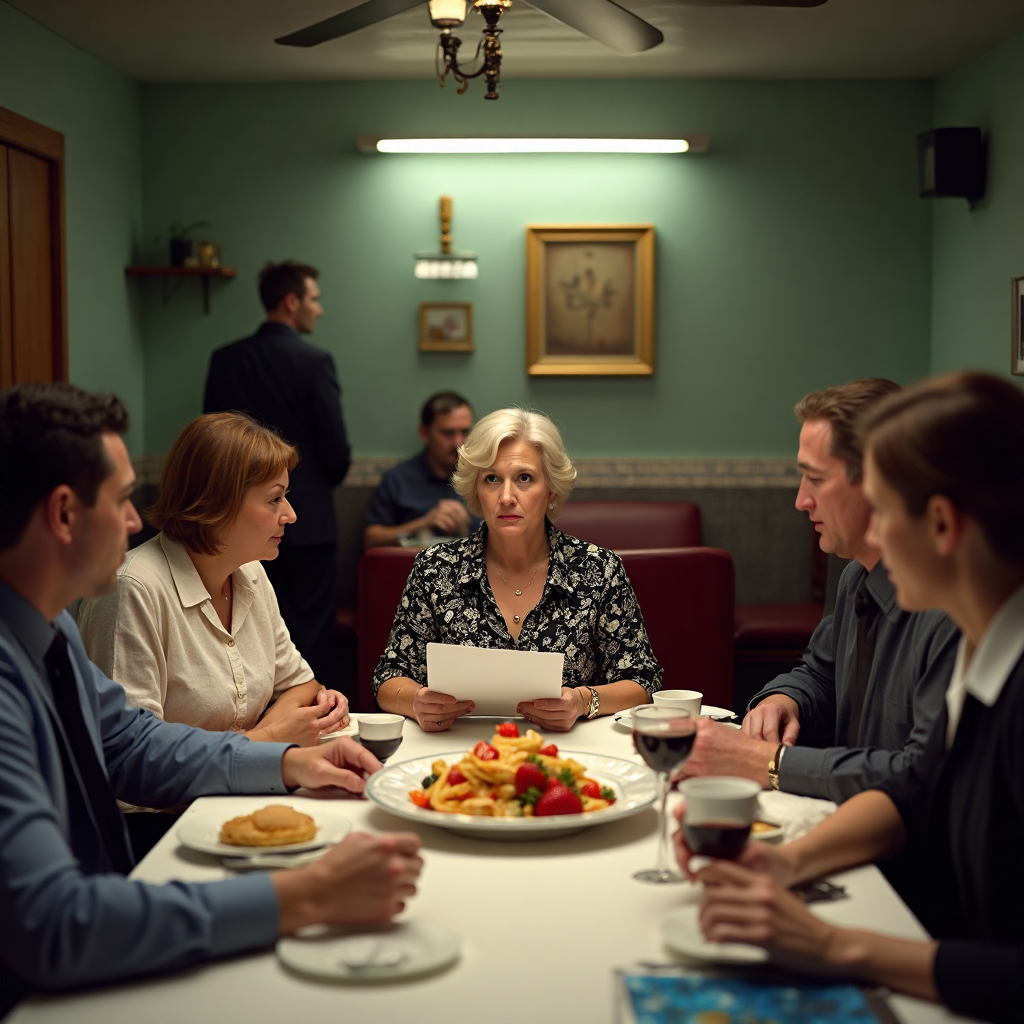 Праздник проходил в местном кафе. Гостей собралось действительно много — человек сорок родственников, друзей, коллег. Тётя Галя была в центре внимания, принимала поздравления, демонстрировала подарки.