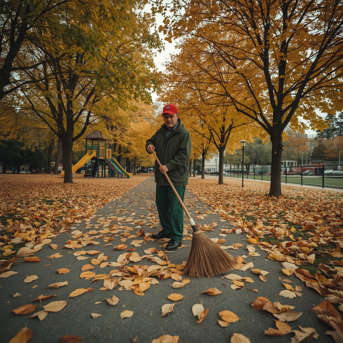 Вышел из подъезда. Пошёл в сторону женщины, убирающей с асфальта листья.