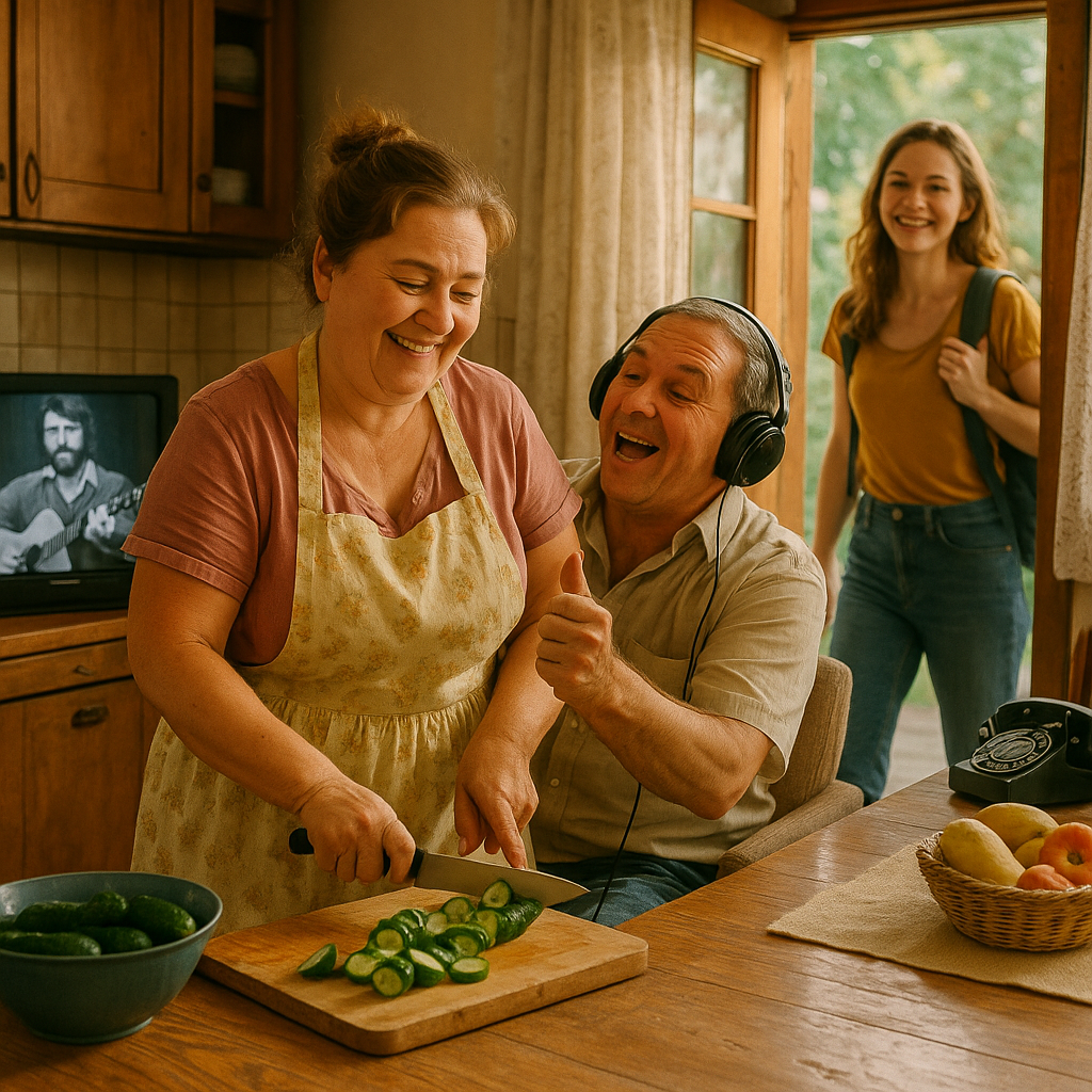 Надя, всегда строгая в запале кулинарного буйства, выглянула из кухни. Её муж, Виктор, сидел в кресле и, подключив наушники к телевизору, двигал губами, тянул ноту, потом резко обрывал, морщась и запрокидывая голову в унисон Высоцкому, что, строго глядя на Виктора с экрана, перебирал струны гитары.