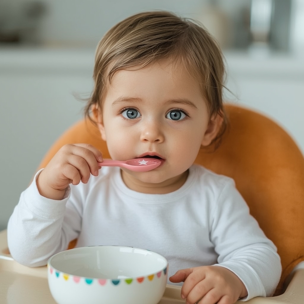 Сын уже умял кусок. Всё его лицо и стол в мокрых крошках. Вновь стал шевелить руками.