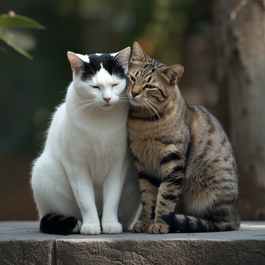 Кошки разом мяукнули и потёрлись о штаны старика. Он наклонился и погладил их.