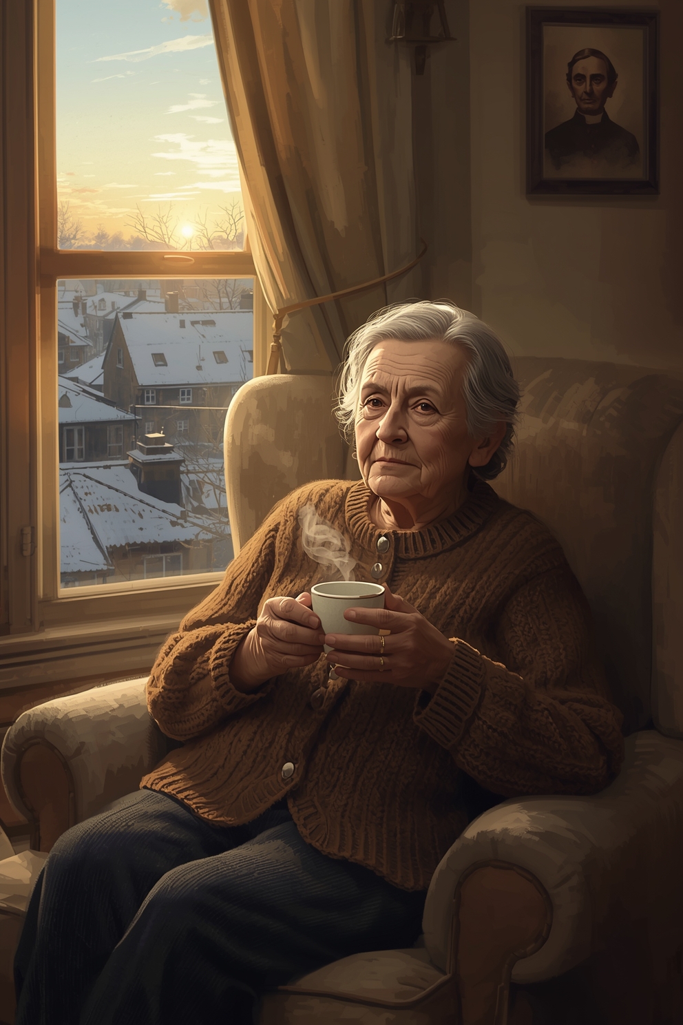Алевтина Степановна, сгорбившись так, что её плечи почти касались стола, сидела в потертом кресле с высокой спинкой. Её тонкие руки, покрытые старческими пятнами, нервно теребили край платочка, которым она время от времени обмахивалась, словно пытаясь прогнать не только духоту, но и тяжёлые мысли. Её соседка, такая же пожилая женщина с добрыми морщинистыми глазами, внимательно слушала, сочувственно кивая головой и подливая в чашку Алевтины Степановны давно остывший чай из изящного чайника.