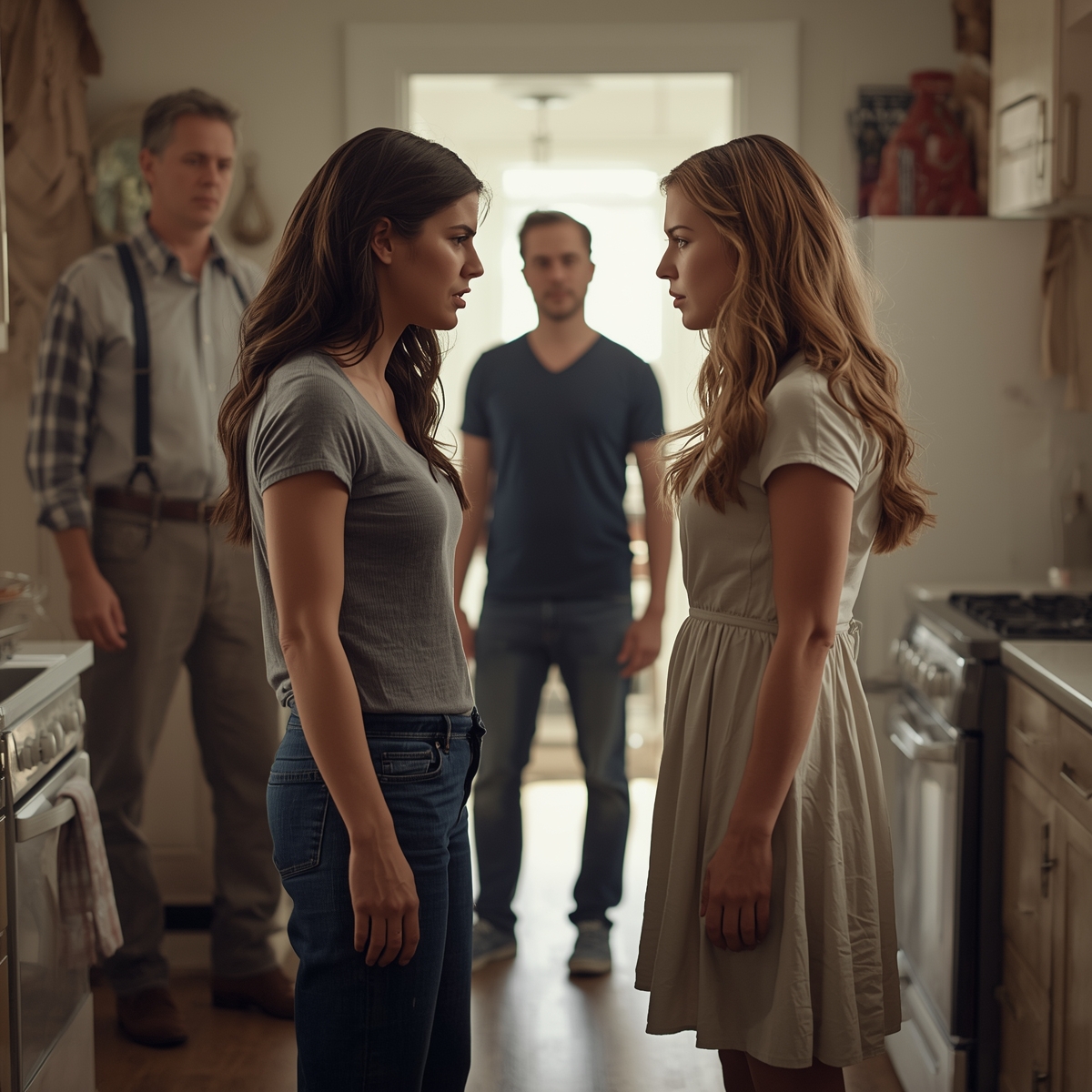 Тишина в кухне была оглушающей. Людмила побледнела, Николай растерянно хлопал глазами, а Саша застыл с открытым ртом, словно не мог поверить в происходящее.
