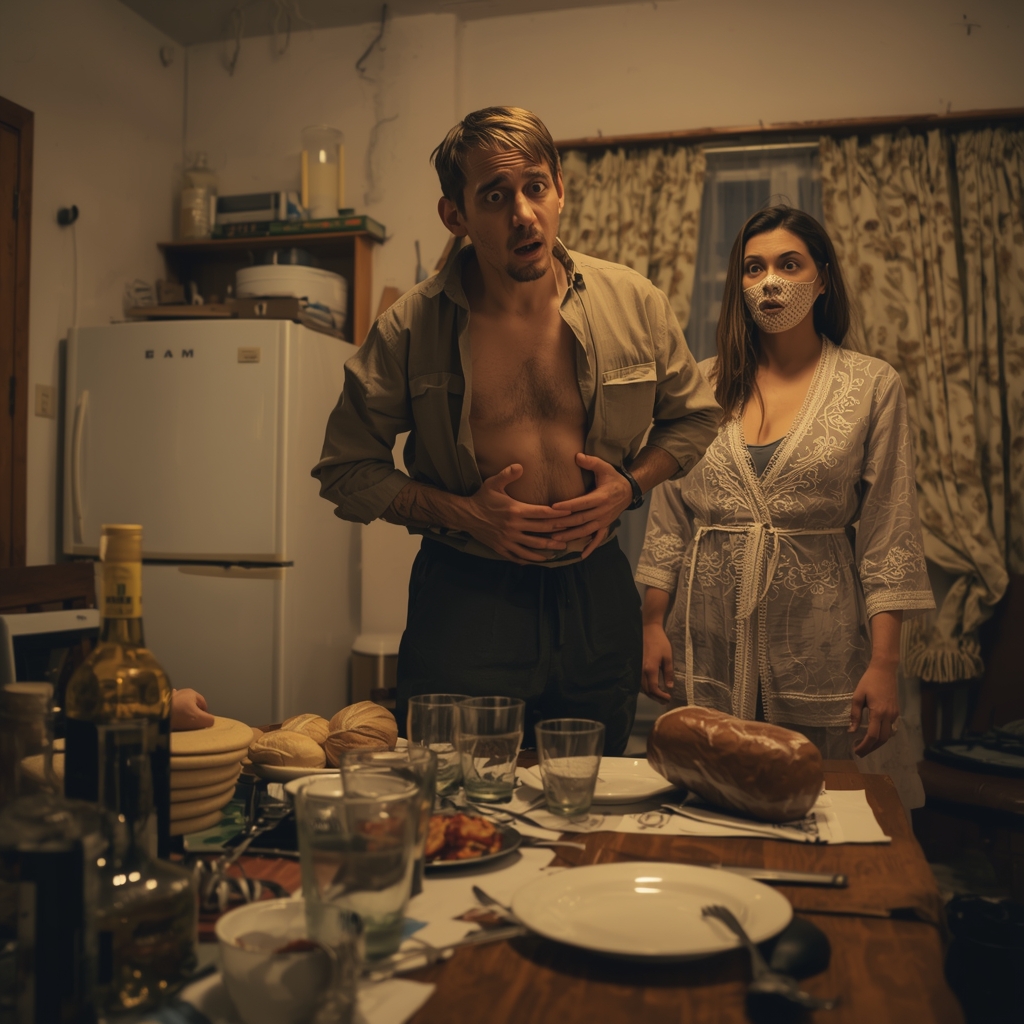 Это был не его старенький, маленький холодильник, а новый, современный и большой. И обои на стенах были другие, и шторки на окнах. И за столом сидела не его жена, а незнакомая ему женщина. Теперь, когда она сняла маску — это стало очевидным!