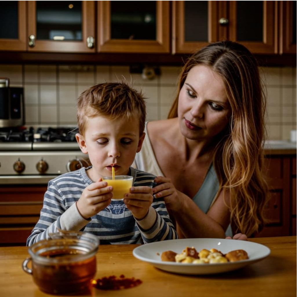 Когда трапеза завершилась, Света буквально заставила сестру и племянника пойти в ванную и отмыть руки и лицо парня, протереть влажным полотенцем одежду.