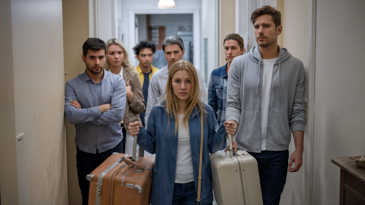 Катя замерла в дверном проёме, глядя на вереницу людей, заполнявших лестничную площадку. Сергей стоял рядом с сестрой, помогая занести сумки. За ними виднелись родители мужа — Анна Петровна с цветастым шарфом на шее и Виктор Иванович в сером пальто. Замыкали процессию муж Марины — Андрей с десятилетним сыном Костей.