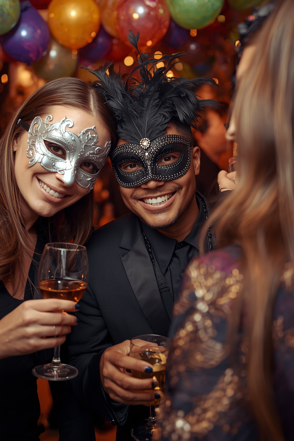 Когда супруги спустились в банкетный зал, почти все уже собрались. Ведущий своими шутками-прибаутками развлекал гостей, предлагая им для таинственности нарядиться в маски.