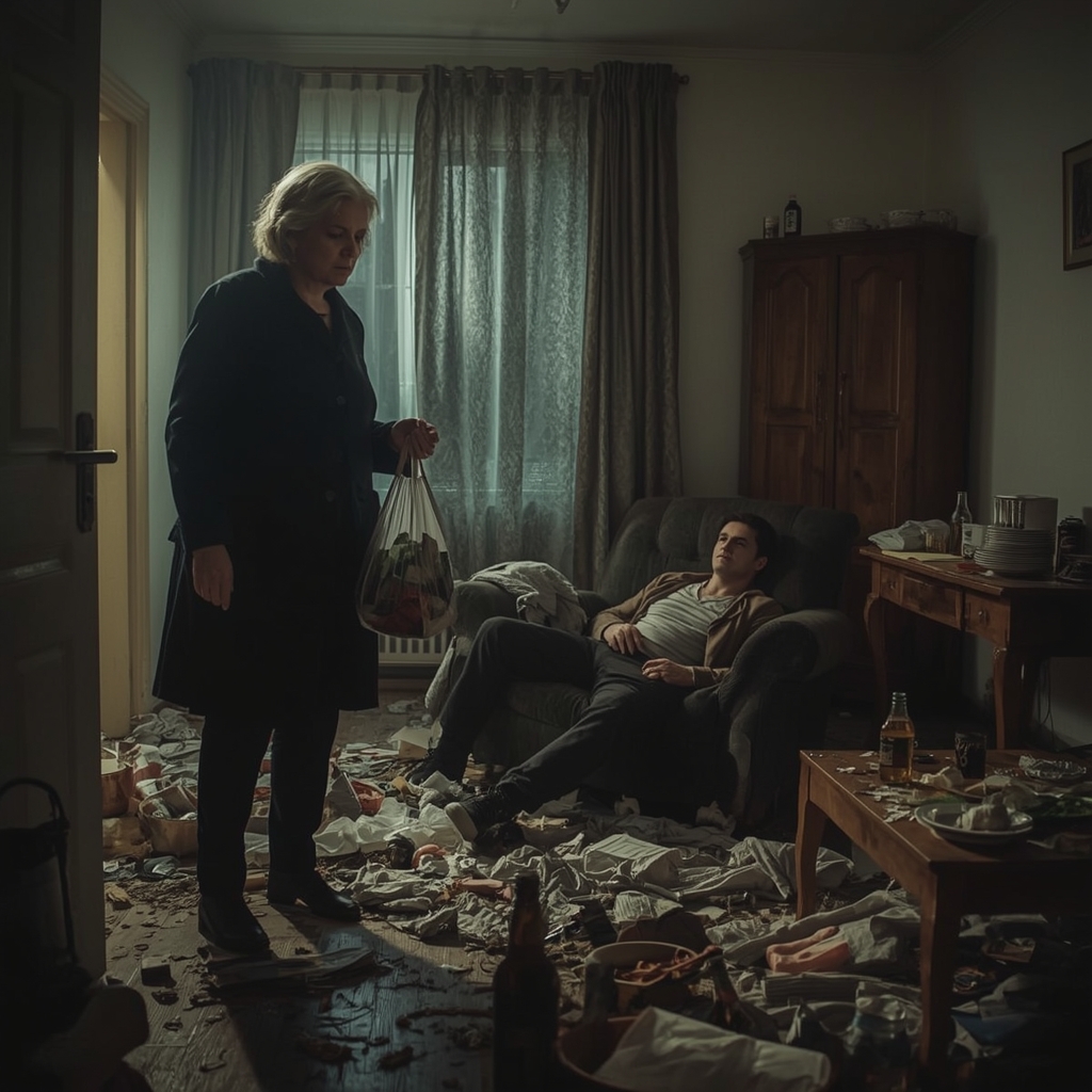 Вера Николаевна замерла у порога своей же квартиры, держа в руках авоську с продуктами. То, что она увидела, не укладывалось в голове: ее гостиная превратилась в склад барахла. Диван сдвинут к окну, стол завален грязной посудой, а на полу валяются носки и пустые бутылки.