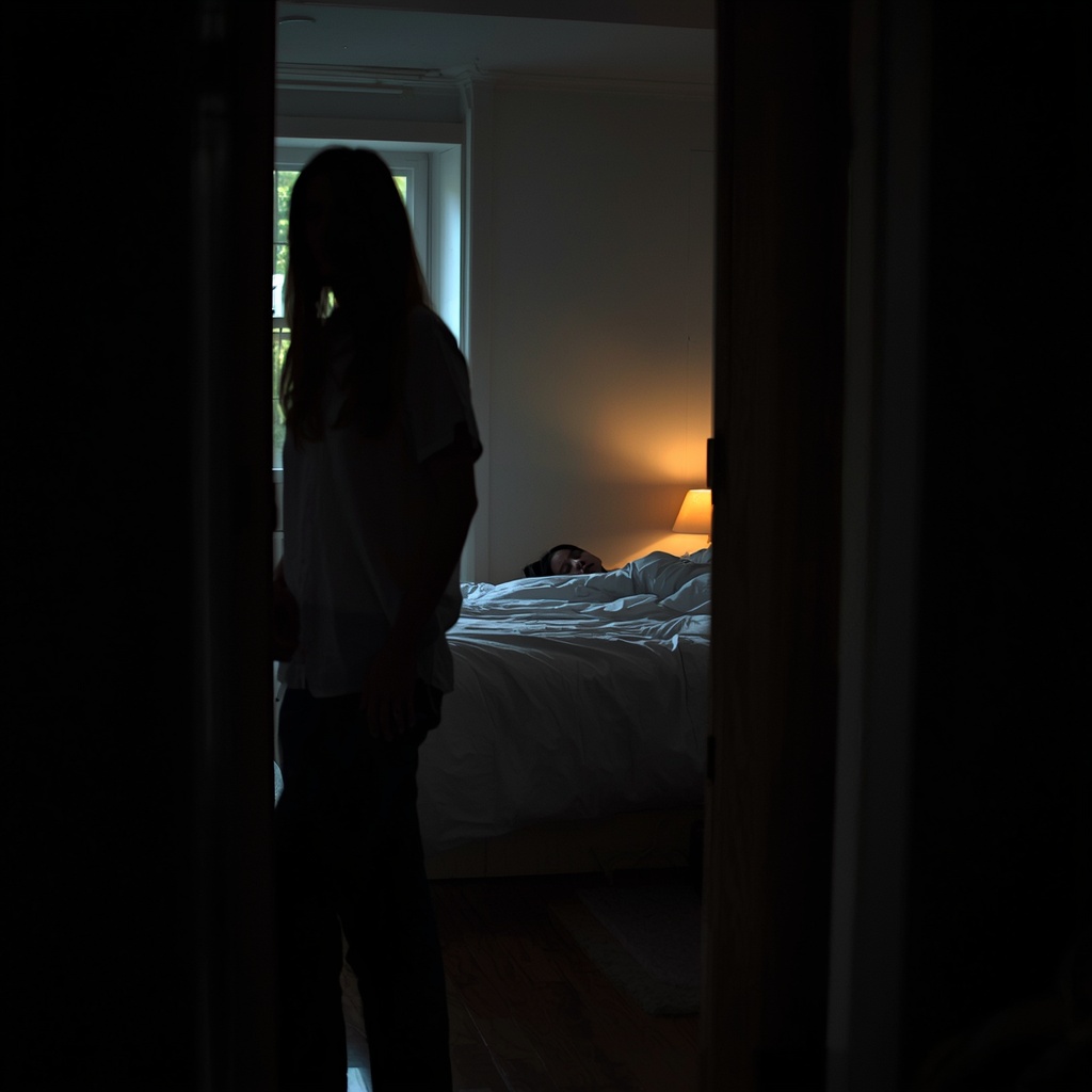 Тишина в квартире казалась густой, настораживающей. Из спальни послышался звук, как будто кто-то перевернулся на другой бок в кровати. Может, Артём спит? Но он же должен был быть на работе… Или ушёл куда-то. Она прошла по коридору, открыла дверь спальни — и застыла.
