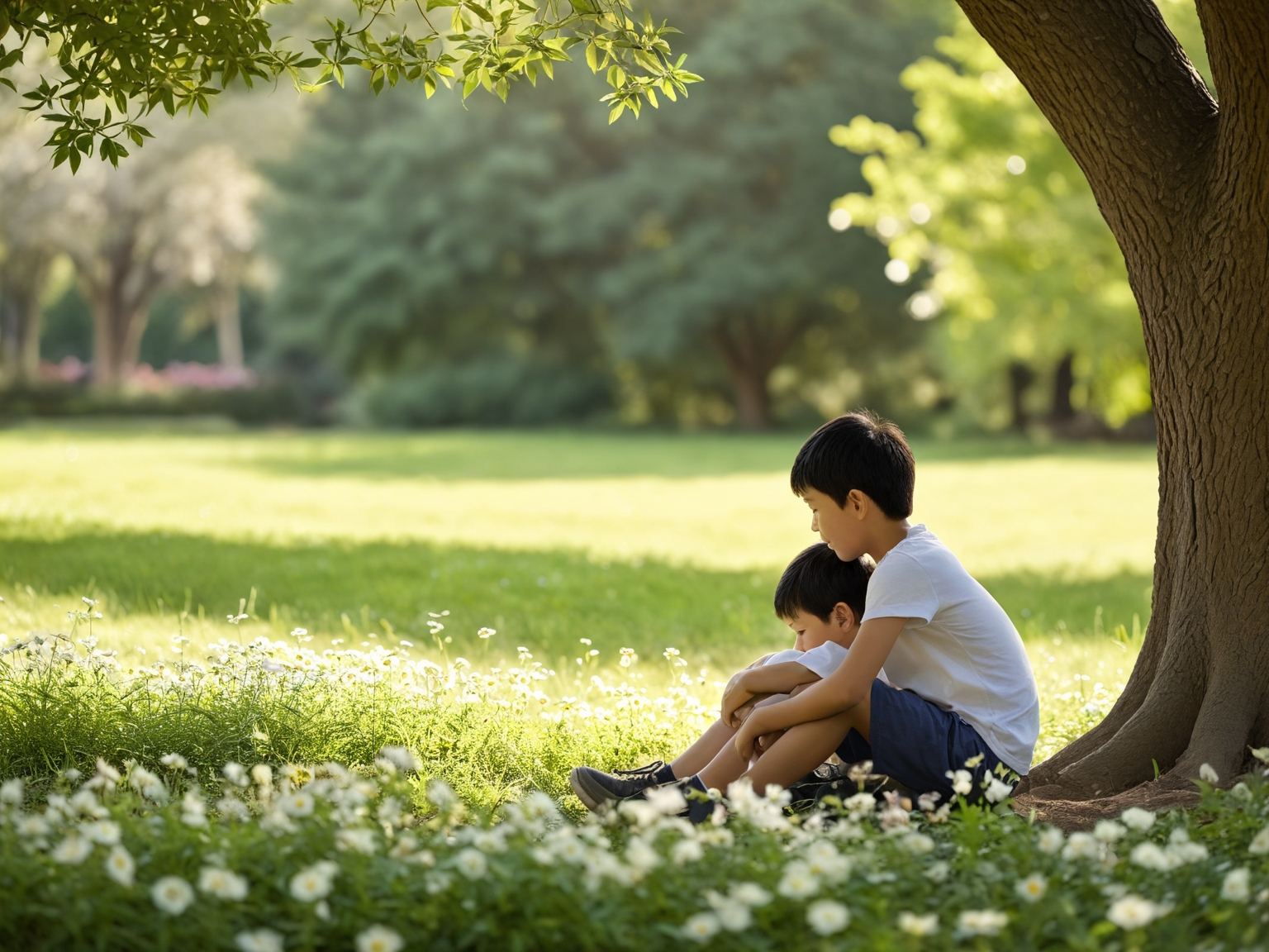 Его внимание привлек тихий плач. Мишка поднял голову и увидел девочку, сидящую на холодной земле. Она была совсем маленькой, не старше пяти лет, и выглядела потерянной. Слезы текли по ее щекам, и она выглядела совершенно беззащитной. Мальчик быстрым уверенным шагом поспешил к ней, помог подняться.