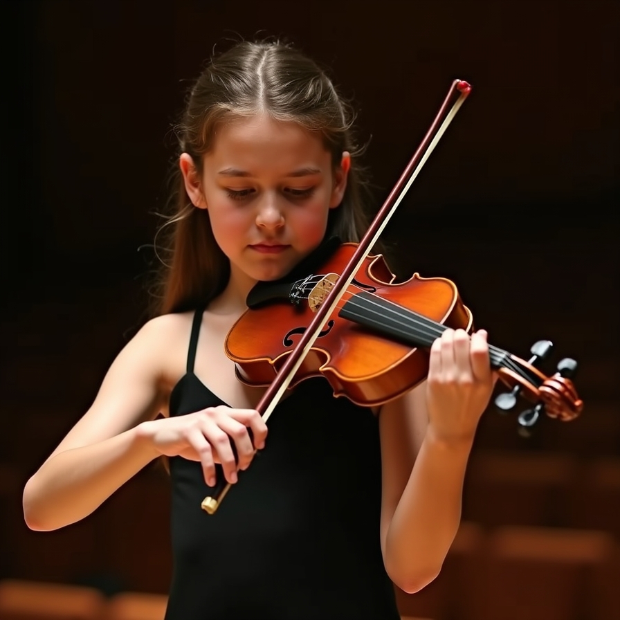 Дирижёр взмахнул палочкой. Оркестр заиграл вступление. Полина подняла скрипку, дождалась своего вступления и начала. Первая тема — широкая, певучая, полная света и надежды. Её пальцы порхали по струнам, смычок пел.