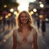 Простое серое платье хорошо сидело на стройной фигуре. Осветлённые густые волосы лежали волнами. Лицо молодой женщины приятное, улыбчивое.