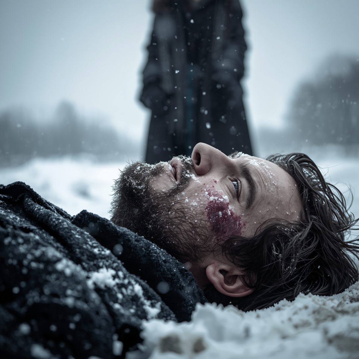 На краю безлюдной улочки, занесённой снегом, в сугробе лежал мужчина. Его лицо обрамляли влажные волосы, а губы посинели от холода. Он едва дышал. Ноги и руки уже почти не слушались, а сознание ускользало, как песок сквозь пальцы.