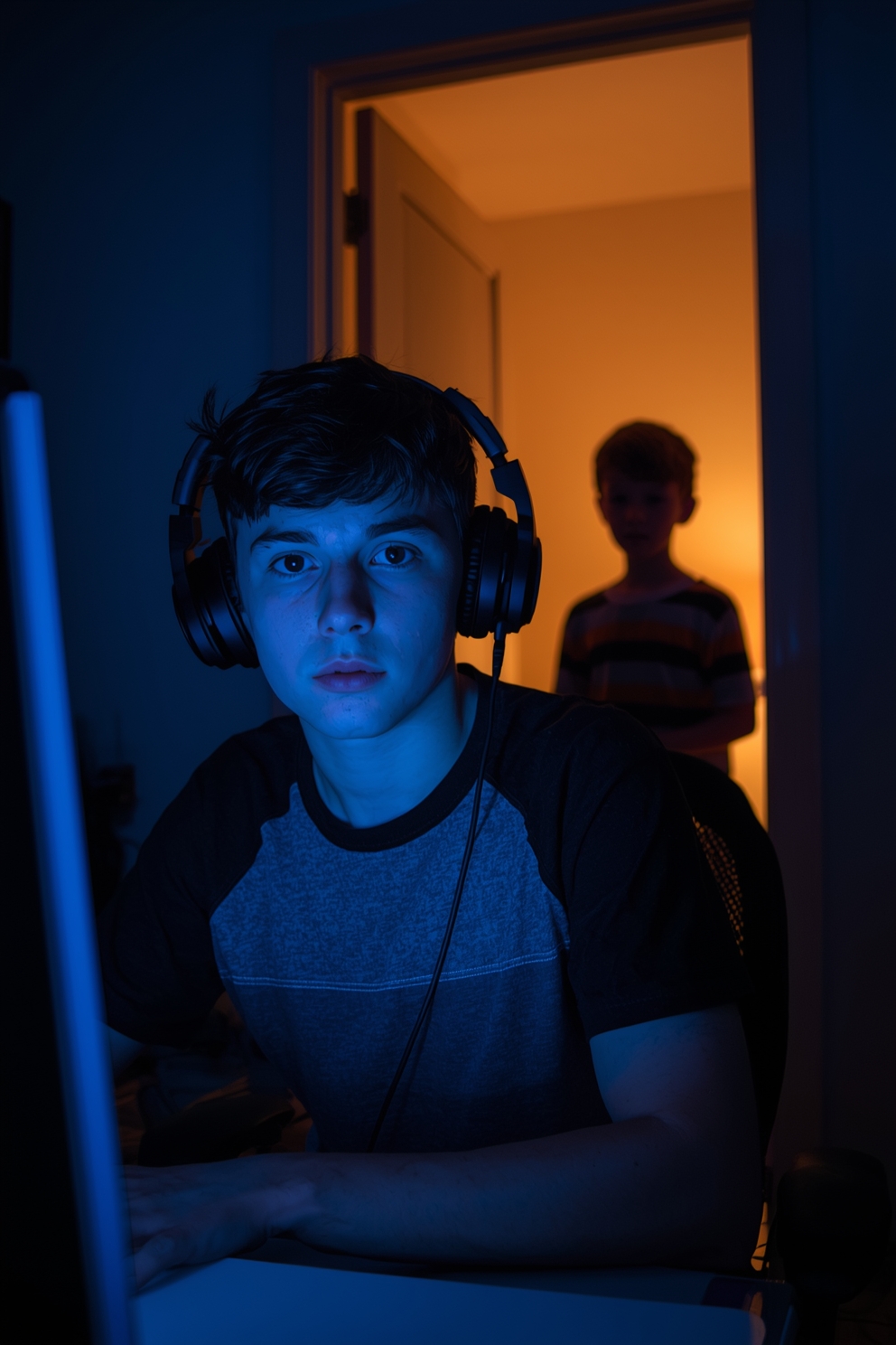 То что дверь в комнату открыта, Костя не сразу понял. Он сидел в наушниках и полностью был погружён в игру. Повернув голову, Костя с удивлением обнаружил что не один в комнате.