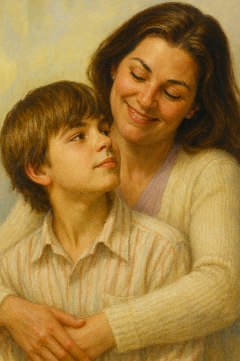 И неважно, что она не красится, одевается просто. Она для него самая лучшая, единственная и красивая. Его мама.