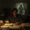 Папа тушит папиросу, листает записную книжку, крутит диск телефона и опять закуривает…