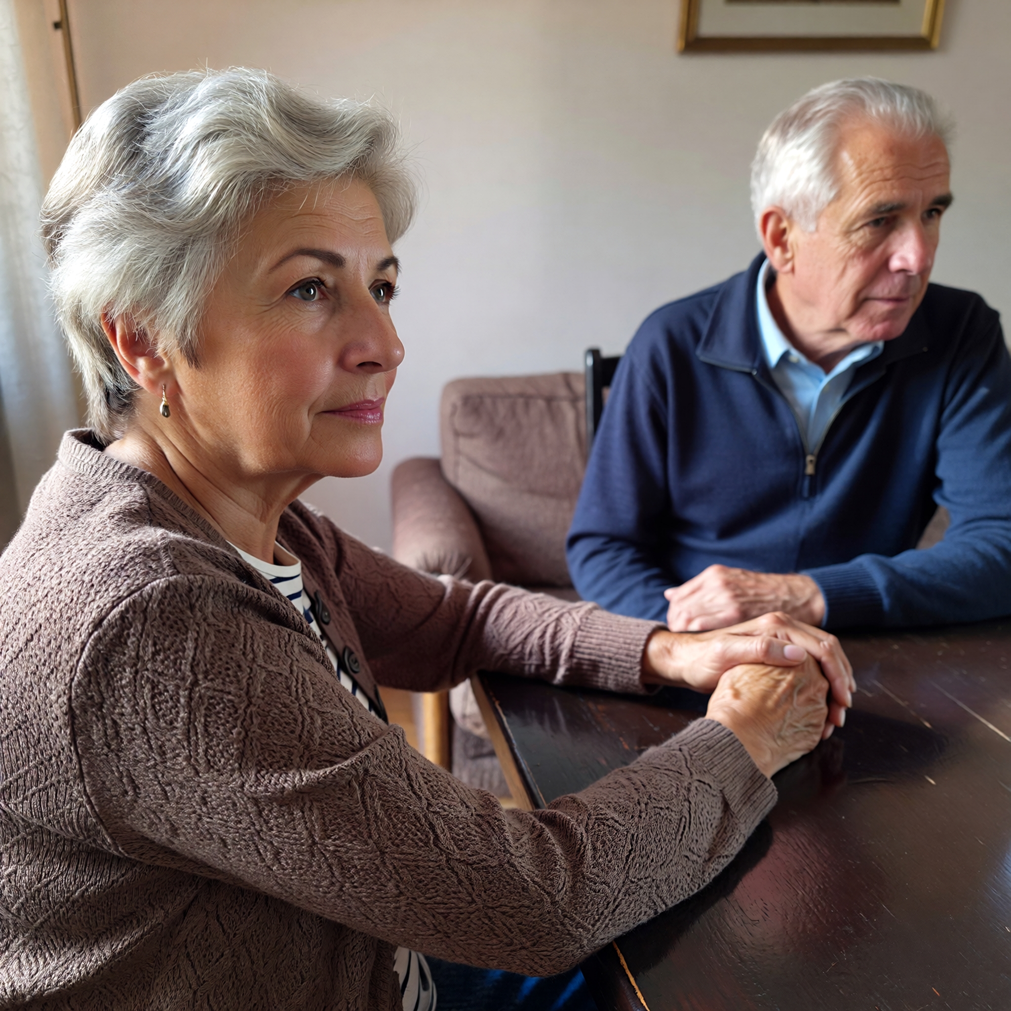 Решение пришло внезапно, словно кто-то шепнул его на ухо. Маша вернулась в комнату, где всё ещё находились свекры. Анна Викторовна сидела на диване, прижимая к груди свитер Олега, и тихо плакала. Николай Сергеевич стоял рядом, положив руку ей на плечо.