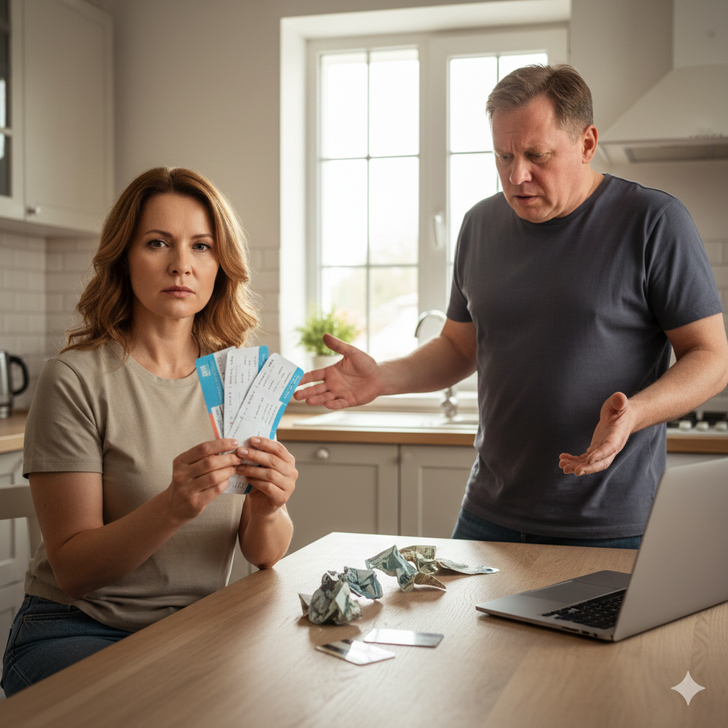 Наши уже недействительные билеты в отпуск лежали на кухонном столе, бронь была аннулирована из-за неоплаты. Три месяца я откладывала с каждой зарплаты на эту поездку. Я считала каждую копейку, отказывалась от обедов в кафе, брала из дома. И все ради того, чтобы накопить на эту поездку.