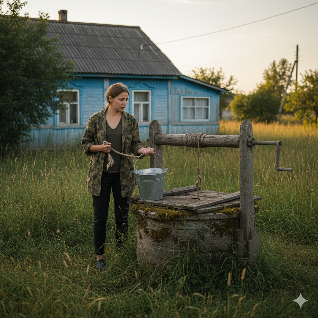 Я на него смотрела, как на марсианский корабль, в городе-то вода из крана течет. А тут — веревку тяни, ведро поднимай. Попробовала я разок и чуть ведро в колодец не уронила.