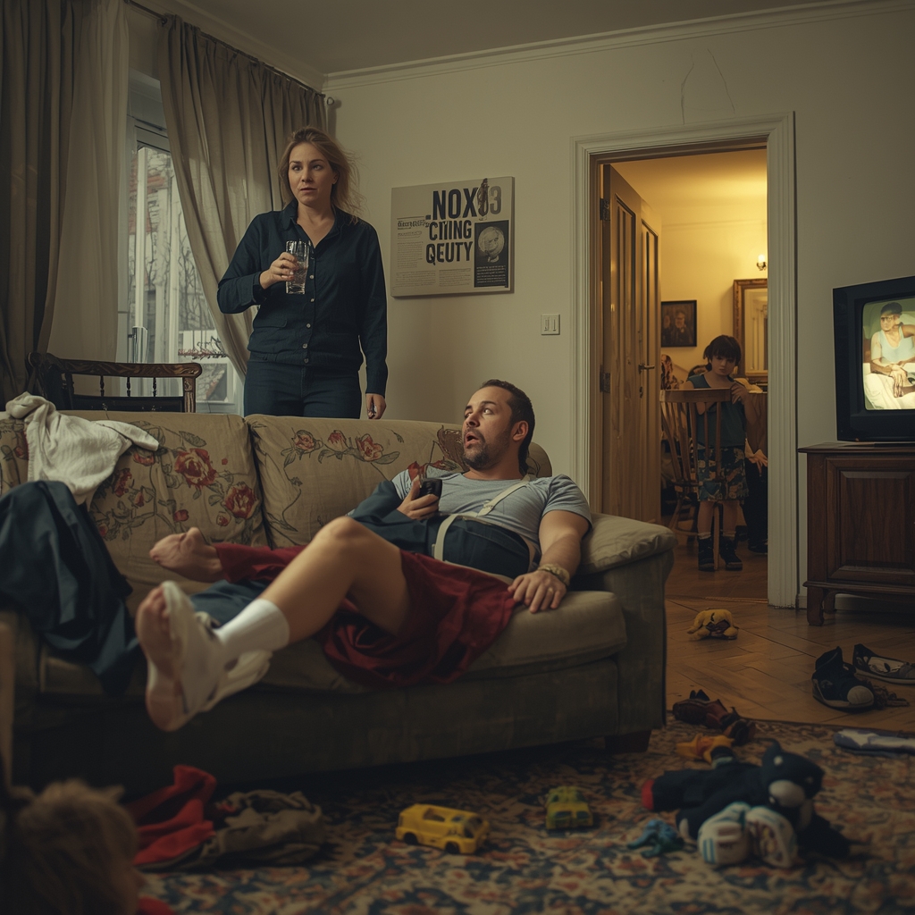 Муж лежал на диване, изображая царскую усталость: лицо небрито, чёткая складка на лбу. И взгляд в потолок, будто рассуждает о судьбе человечества. Только вот человечество — это мы: я да дети, которые теперь тоже искусно привлекались к помощи больному отцу — то воды подать, то пульт принести.