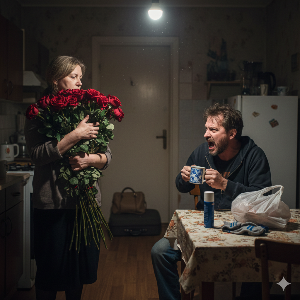 Но у выхода её обогнал мужчина. Высокий, чуть сутулый, в чёрной куртке. Нёс огромный букет. Настоящую охапку роз — наверное, штук сто. Красные, пышные, в плёнке. Он еле держал их в руках, и Людмила Григорьевна даже остановилась, чтобы посмотреть.