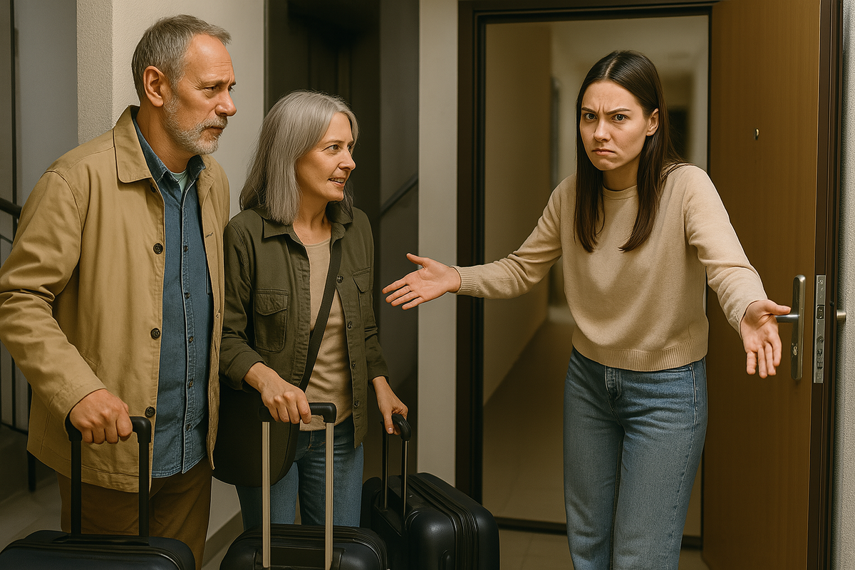 Марина стояла в дверях своей квартиры, босая, в домашней футболке, сжав кулаки до побелевших костяшек. Перед ней — растерянные родители и брат, с чемоданами в руках и растерянностью в глазах.