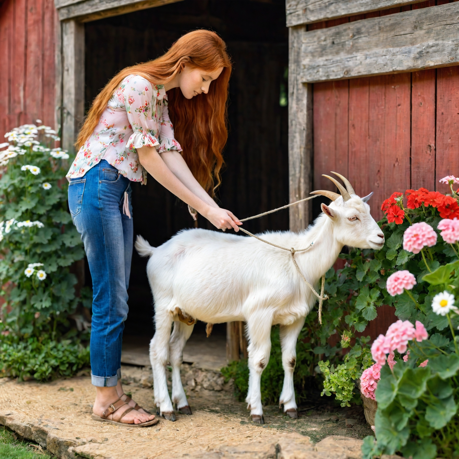 — Тащи! Помогай давай! — Анжелика со всех сил тянула за рога на себя белоснежную козочку по кличке Ромашка.