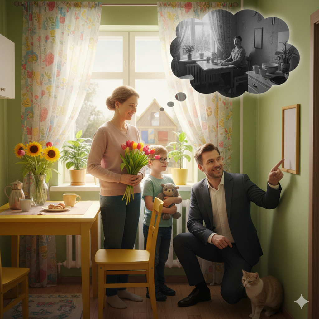 Квартира, где жила Ольга с детьми, была съёмной. Раньше платил за всё Виталий. Сейчас платить было нечем. Пришлось переезжать в бабушкину «двушку» на окраине — тёмную, с облупившейся штукатуркой и запахом плесени. Обои в комнатах отставали от стен, как старые шрамы.
