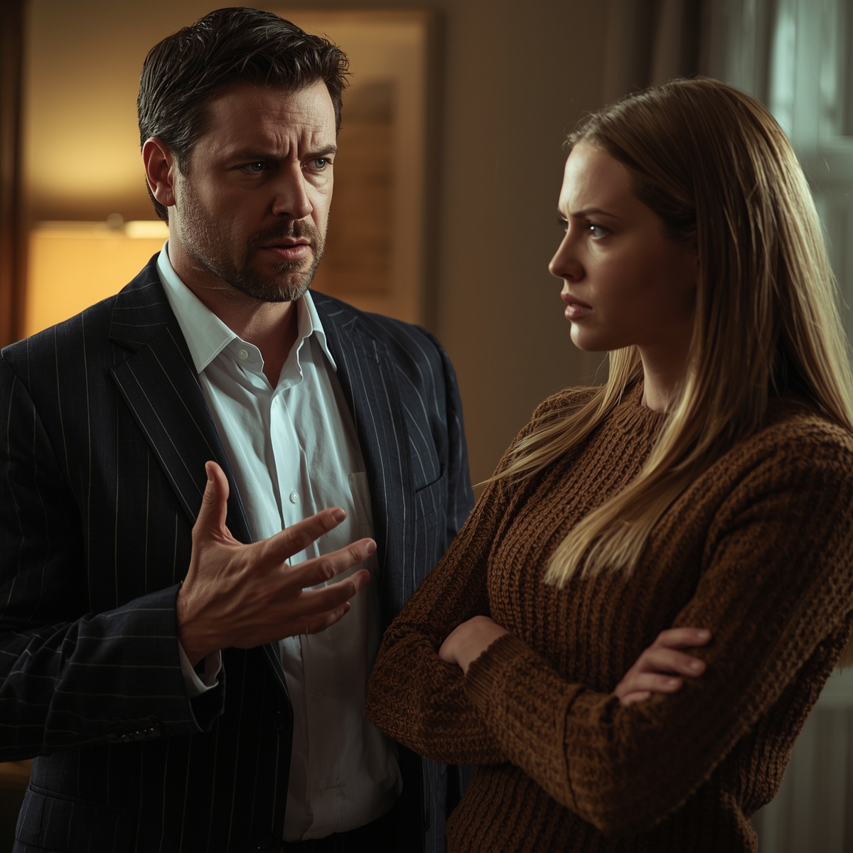 Сергей, сложив руки на груди, пытался выглядеть спокойным, но выдавали его напряжённые плечи и лёгкая дрожь в голосе.
