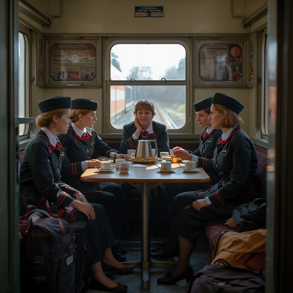 Поезд прибыл на конечную станцию и проводницы собрались перекусить и чайку попить.