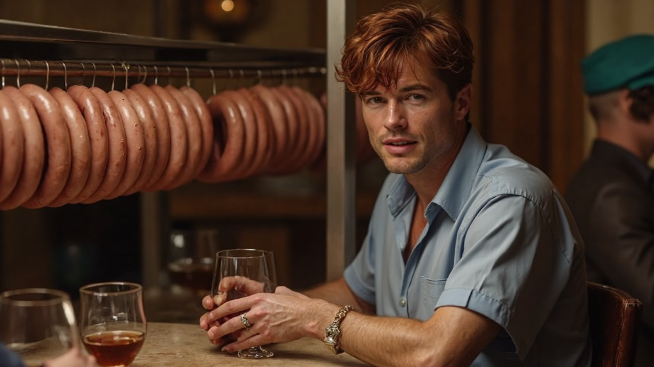 Его собеседник, наоборот, говорил быстро, жестикулировал отчаянно. Был он высок ростом, кряжист, как минимум два дня небрит, рыжие волосы всклокочены. Однако, приглядевшись, можно было заметить, что одет он не хуже, а может, и лучше своего визави, просто его хорошая одежда скорее богемного, чем делового стиля, казалась дешёвой из-за помятости и пятен, а несколько перстней на толстых пальцах являли собой очень дорогой, но, увы, совершенно махровый китч.
