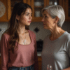 Дверь открылась с трудом — её почти замело снегом. На пороге стояла девушка, хрупкая, как тростник, в элегантном тёмном пальто. В руках она держала свёрток. Лицо её было заплакано, глаза расширены от страха.