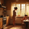 Женя сидела на табурете. На плите шумел чайник.