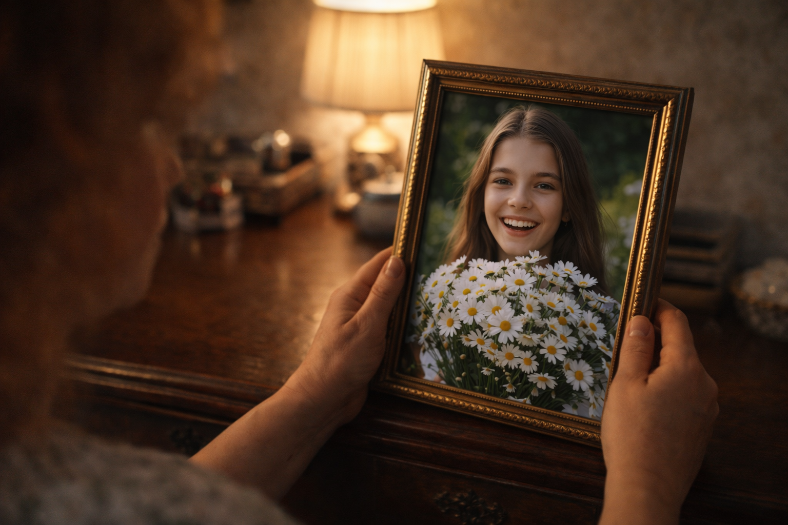 Яна на фото — лет семнадцати, глаза блестят, улыбка до ушей, в руках огромный букет ромашек.