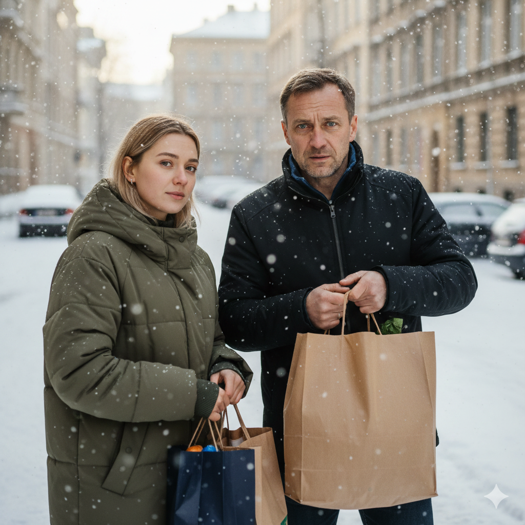 Ксения шла с тяжелыми пакетами из супермаркета.