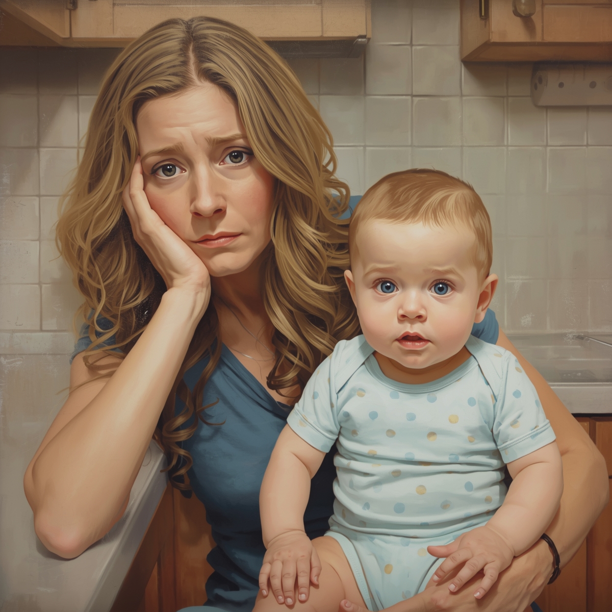 Маша немного погуляла с подругой и вернулась домой. Она застала Лёню, дремлющего в кресле с сыном на руках. Она забрала ребенка и уложила в кроватку, но будить мужа не стала. Маша хотела тихо уйти, но Лёня уже не спал — он поймал ее за руку и притянул к себе.