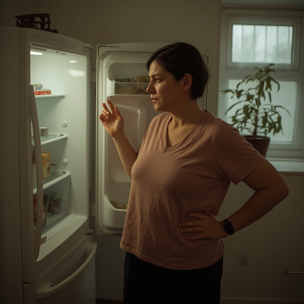 Поздно вечером Римма проснулась от звуков за окном. Выглянув на улицу, заметила тень Ростислава, который рылся в каком-то пакете за домом, рядом с мусорными баками. Она скользнула к двери, чтобы проверить. Оказалось, он искал выброшенные коробки или упаковки — видимо, «выискивал» что-то интересное.